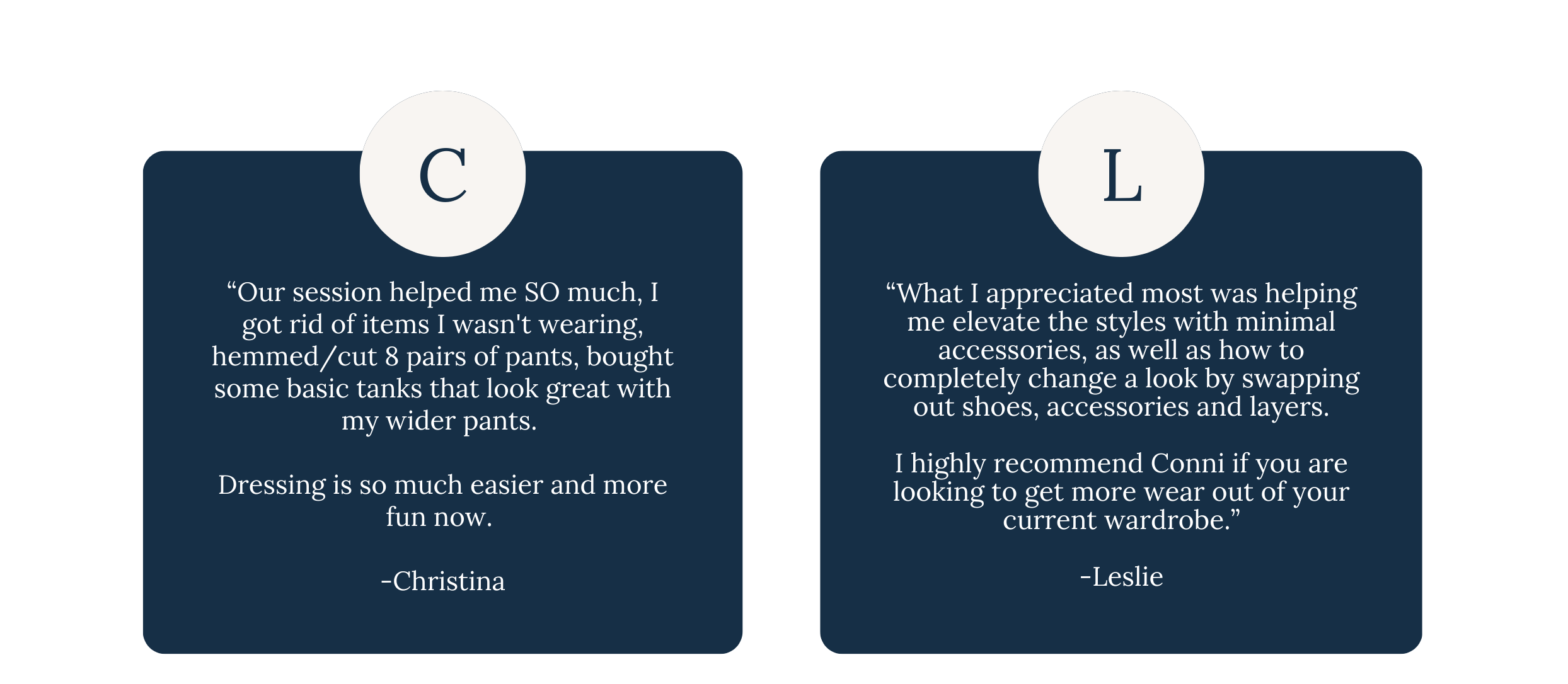 I’m Conni, a San Diego wardrobe stylist, outfit planning expert, & closet edit guru.